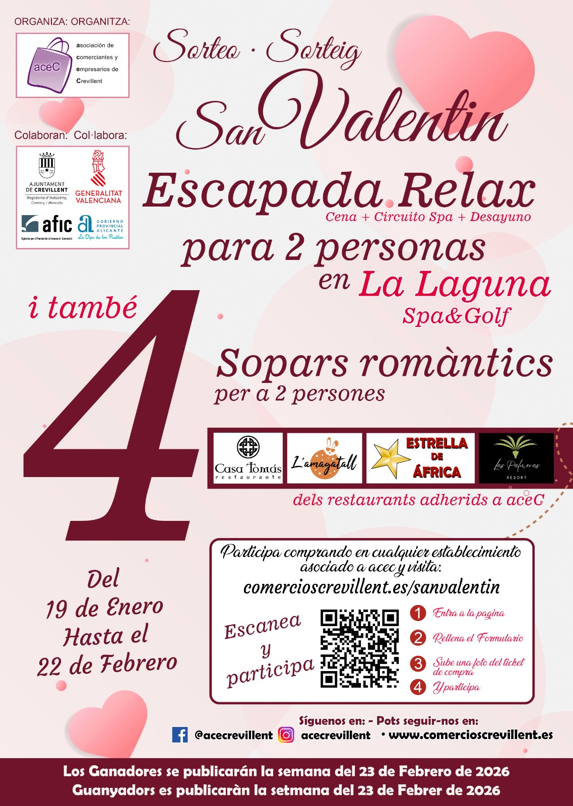 La Asociación de comerciantes ya tiene en marcha el sorteo de San Valentín en el cual se van a sortear una escapada rural en «La Laguna» para 2 personas y 4 cenas románticas para 2 personas